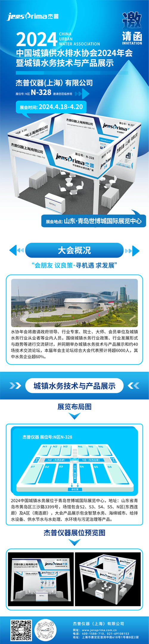 2024中國城鎮(zhèn)水務(wù)展位于青島世博城國際展覽中心(山東省青島市黃島區(qū)三沙路3399號),場館包含S2、S3、S4、S5、N區(qū)(東西連廊)及A區(qū)(南連廊),大會產(chǎn)品展示包含智慧水務(wù)、海綿城市、給排水設(shè)備、供水節(jié)水與水處理、水環(huán)境與污泥治理等產(chǎn)品。杰普儀器位于N-328展位將攜多款在線分析儀硬度堿度、流動電流、水質(zhì)多參數(shù)、余氯等系列在線進行現(xiàn)場展示,與您分享自來水行業(yè)水質(zhì)監(jiān)測方案提供全面的水質(zhì)測量技術(shù)咨詢服務(wù),期待您蒞臨現(xiàn)場交流。