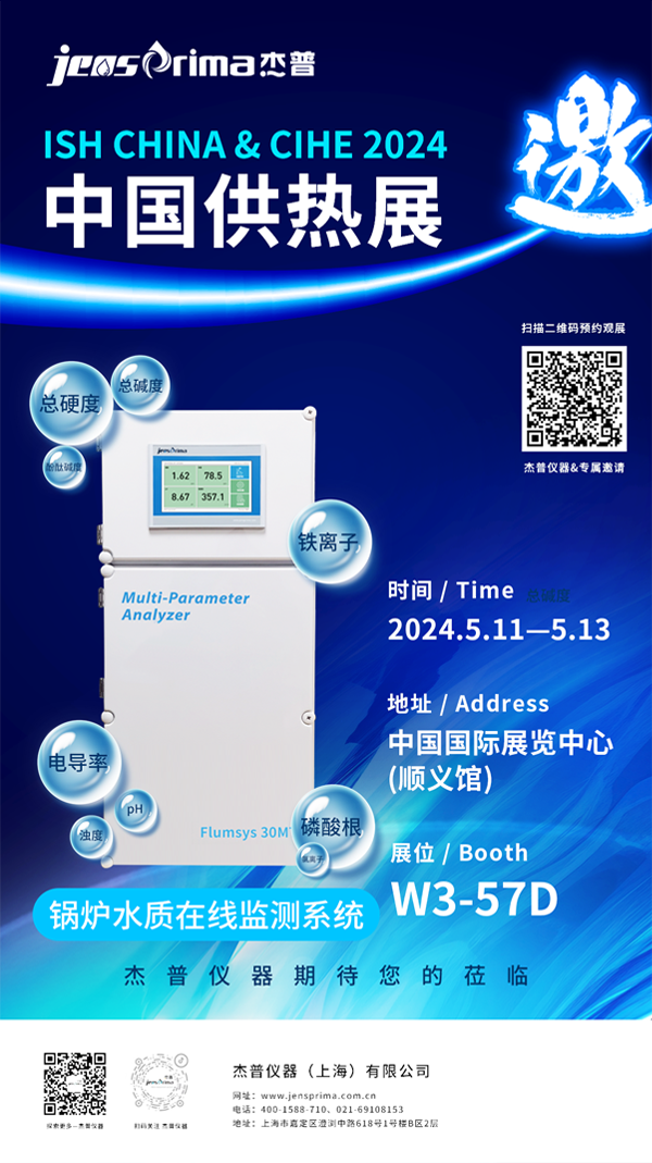 Water水主題展區(qū)為大會(huì)重要組成部分之一,著重給排水產(chǎn)品與技術(shù)的發(fā)展,為管泵閥、水表、水箱、消防設(shè)備等產(chǎn)品。杰普儀器邀您2024年5月11至13日共赴盛會(huì),向暖而生,勇創(chuàng)未來!杰普儀器(上海)有限公司 | 展位號(hào):W3-57D,參展產(chǎn)品鍋爐水質(zhì)在線監(jiān)測(cè)系統(tǒng)Flumsys 30MT及行業(yè)水質(zhì)測(cè)量?jī)x表及分享鍋爐水質(zhì)在線測(cè)量集成定制服務(wù)案例,為您提供更多水質(zhì)測(cè)量解決方案,期待您蒞臨現(xiàn)場(chǎng)交流!