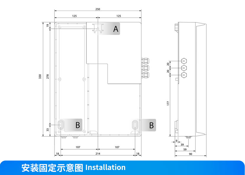 安裝方式:室內(nèi)掛墻安裝,固定螺絲:3個(gè)M4